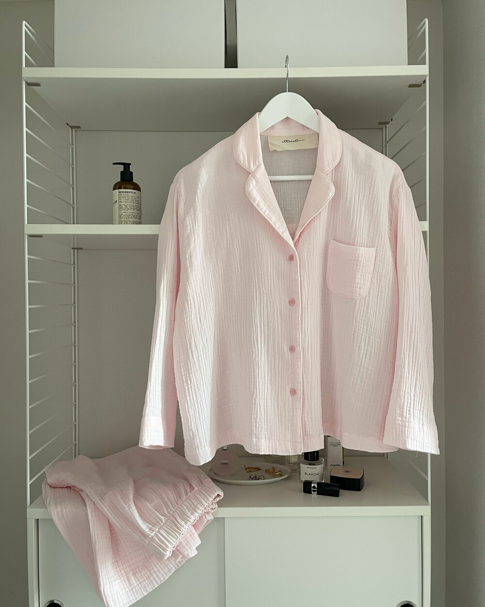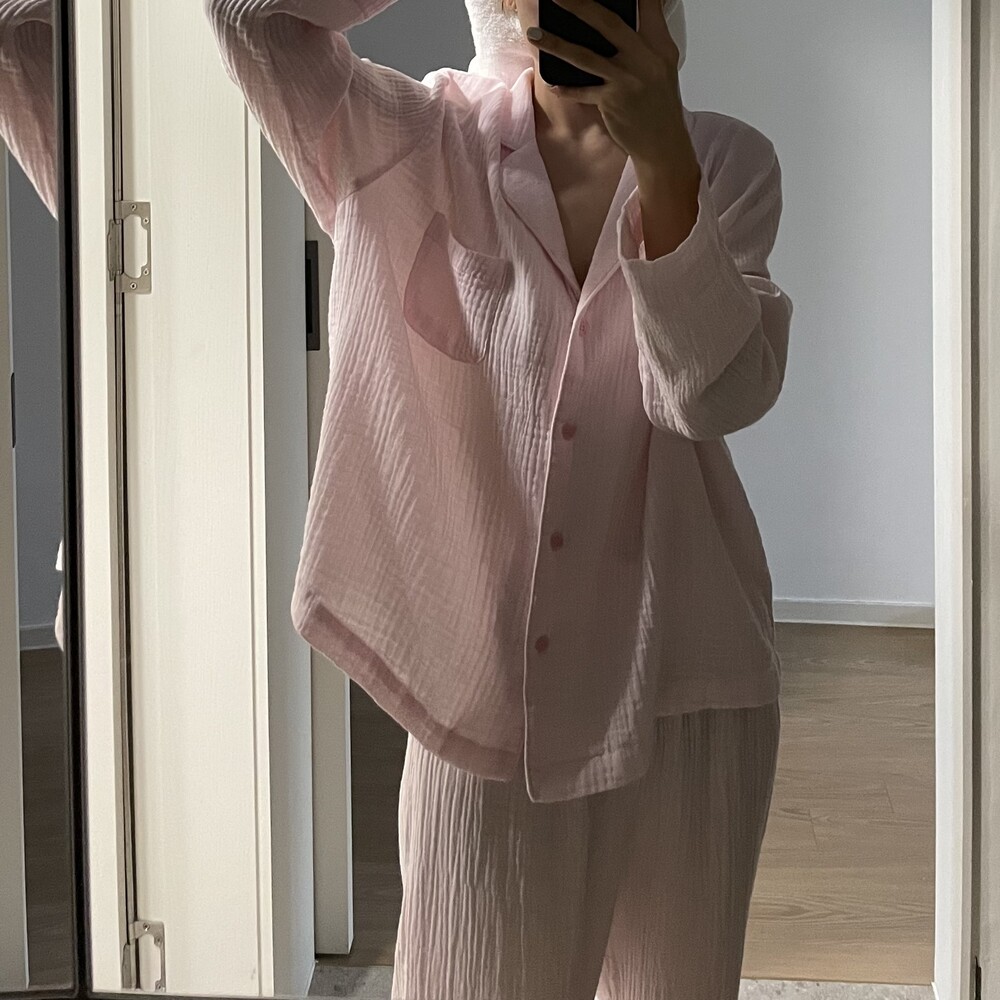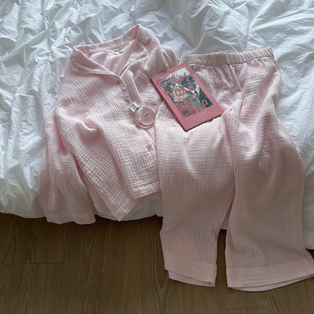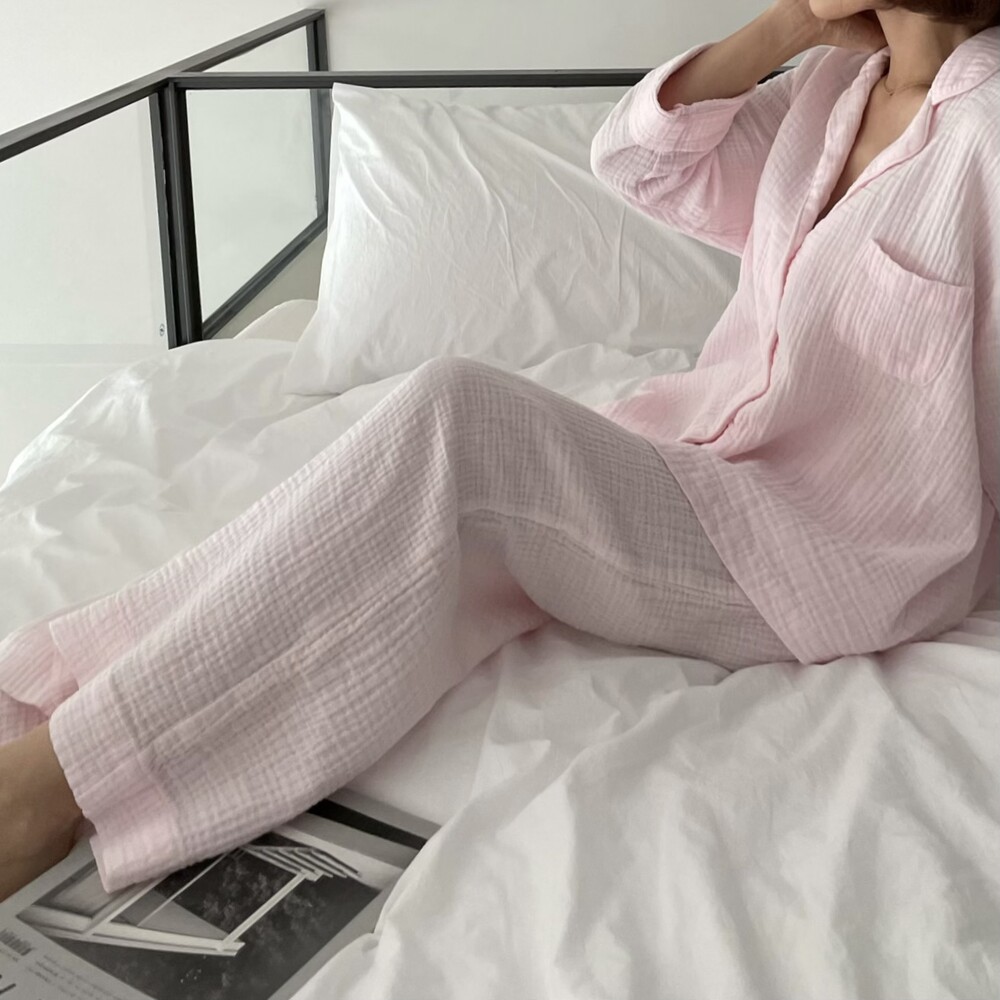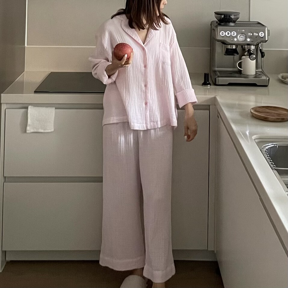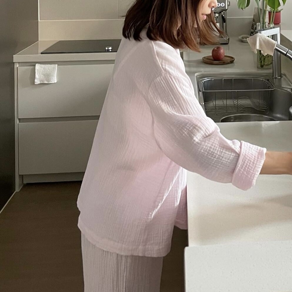 이중 거즈 소재로 안 입은듯 사계절 가볍고 쾌적하게 착용하기 좋아요.