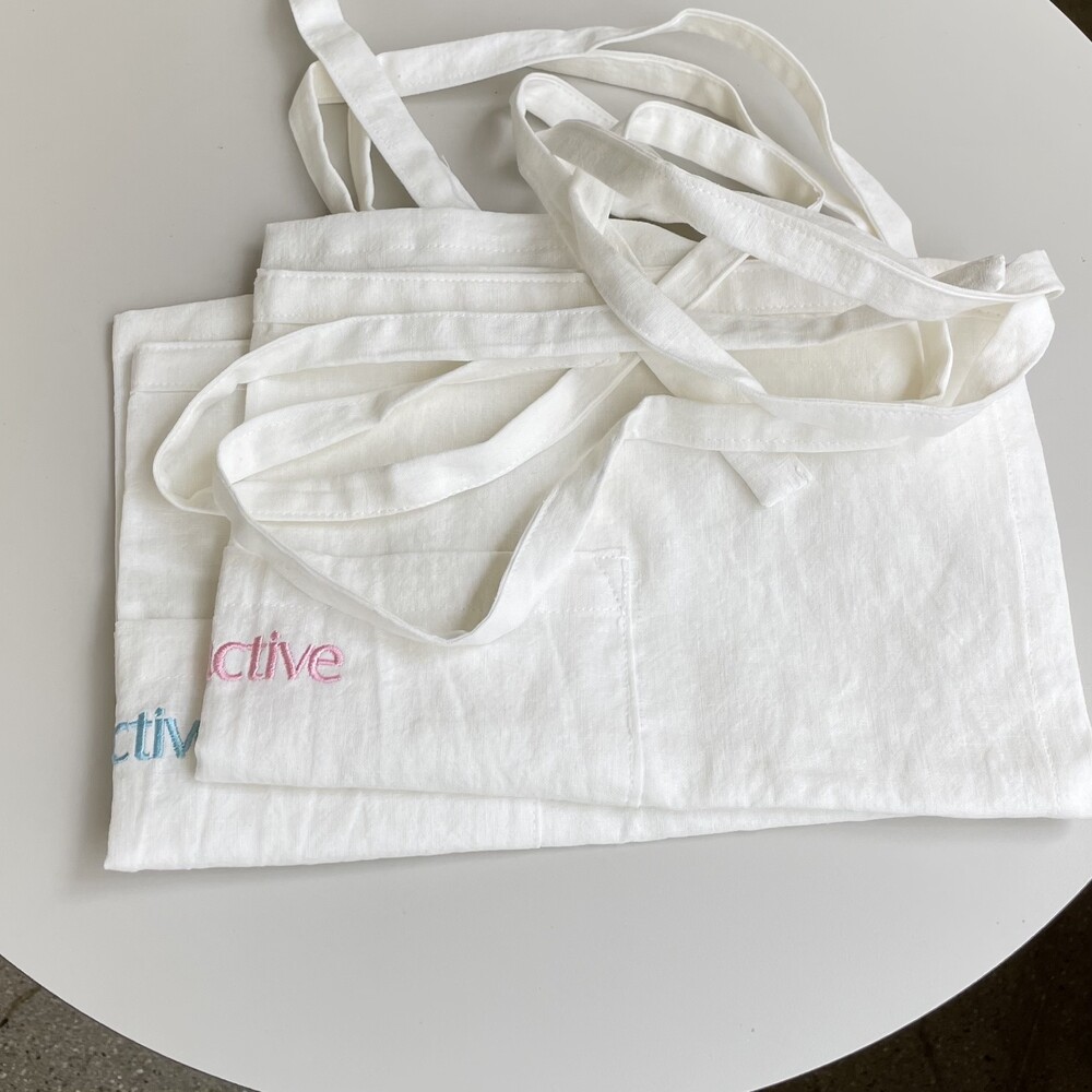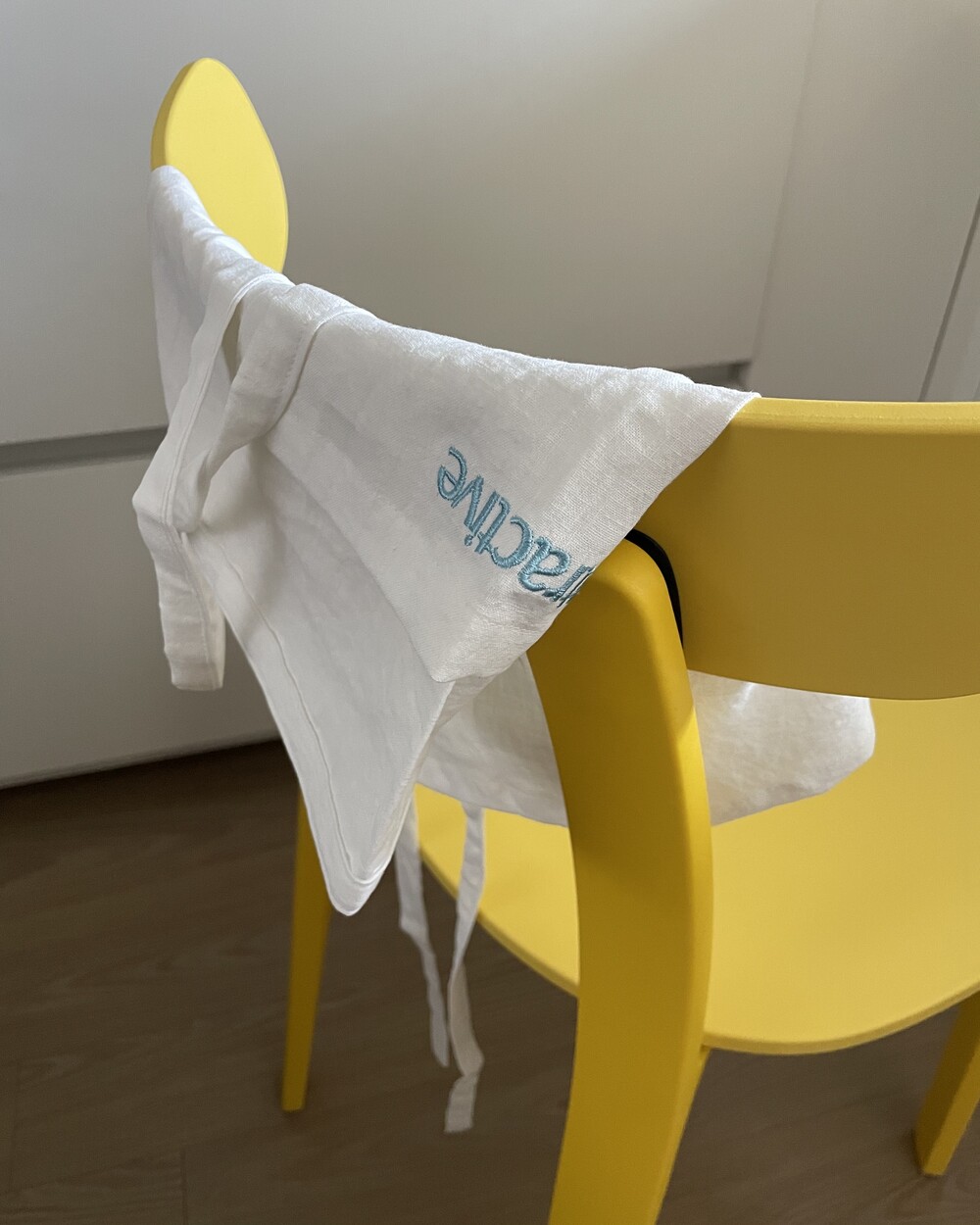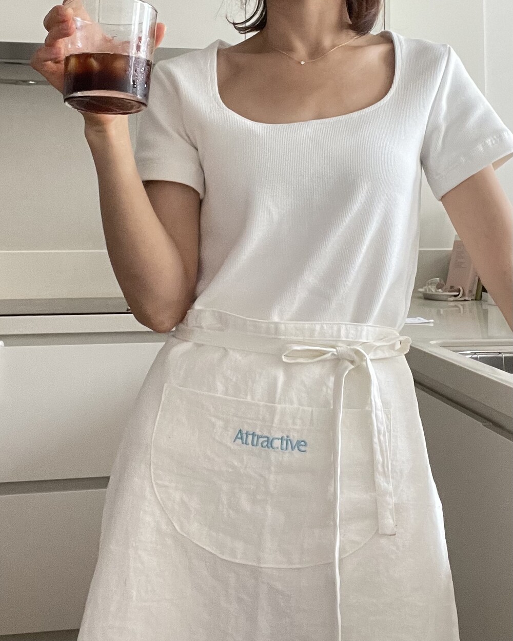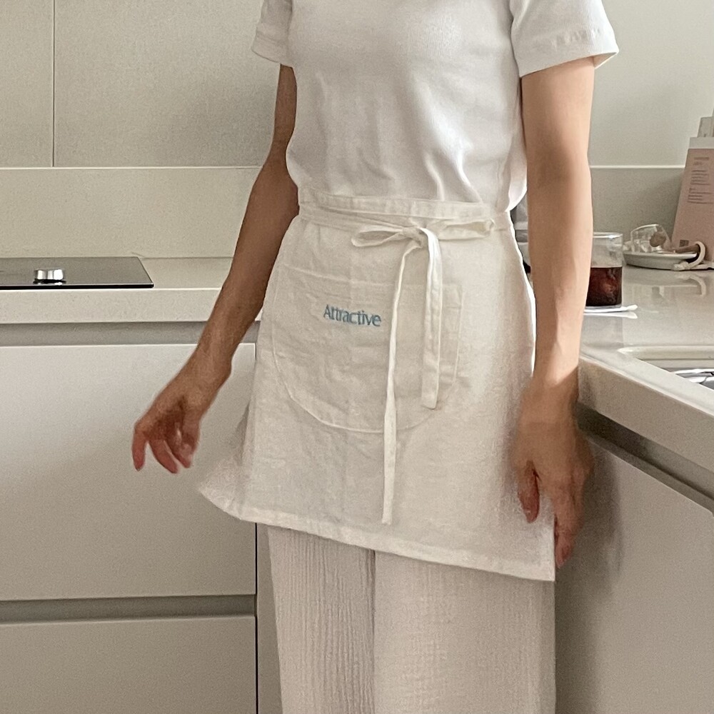 깨끗한 화이트 컬러 린넨 원단으로 제작한 스커트 에이프런