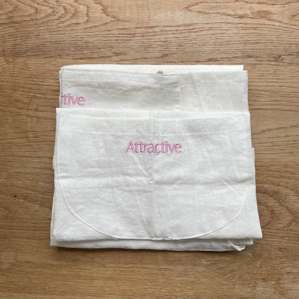 사랑스러운 핑크 컬러 자수가 매력적인 에이프런 입니다.