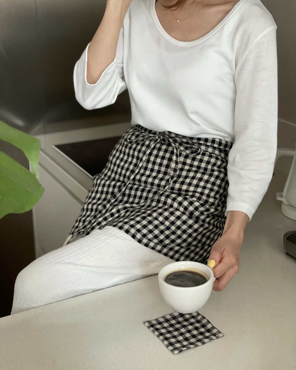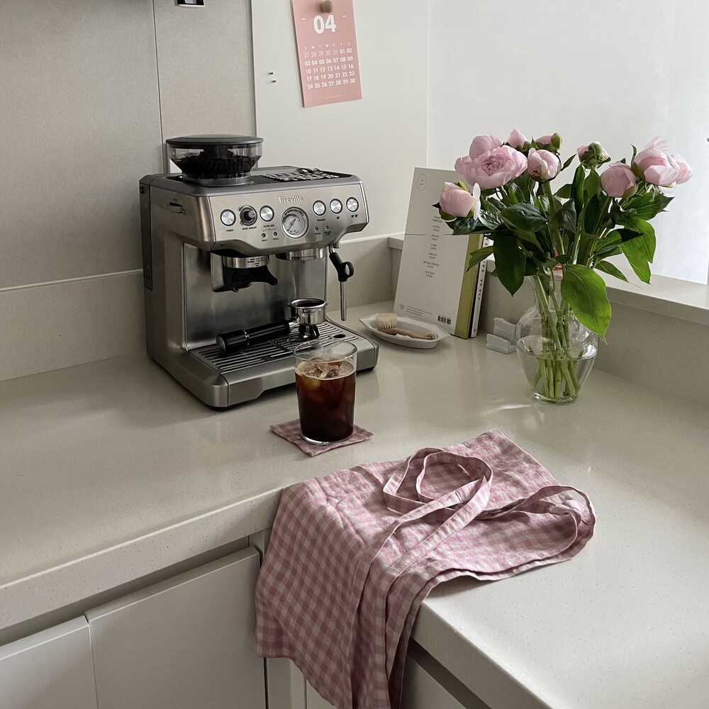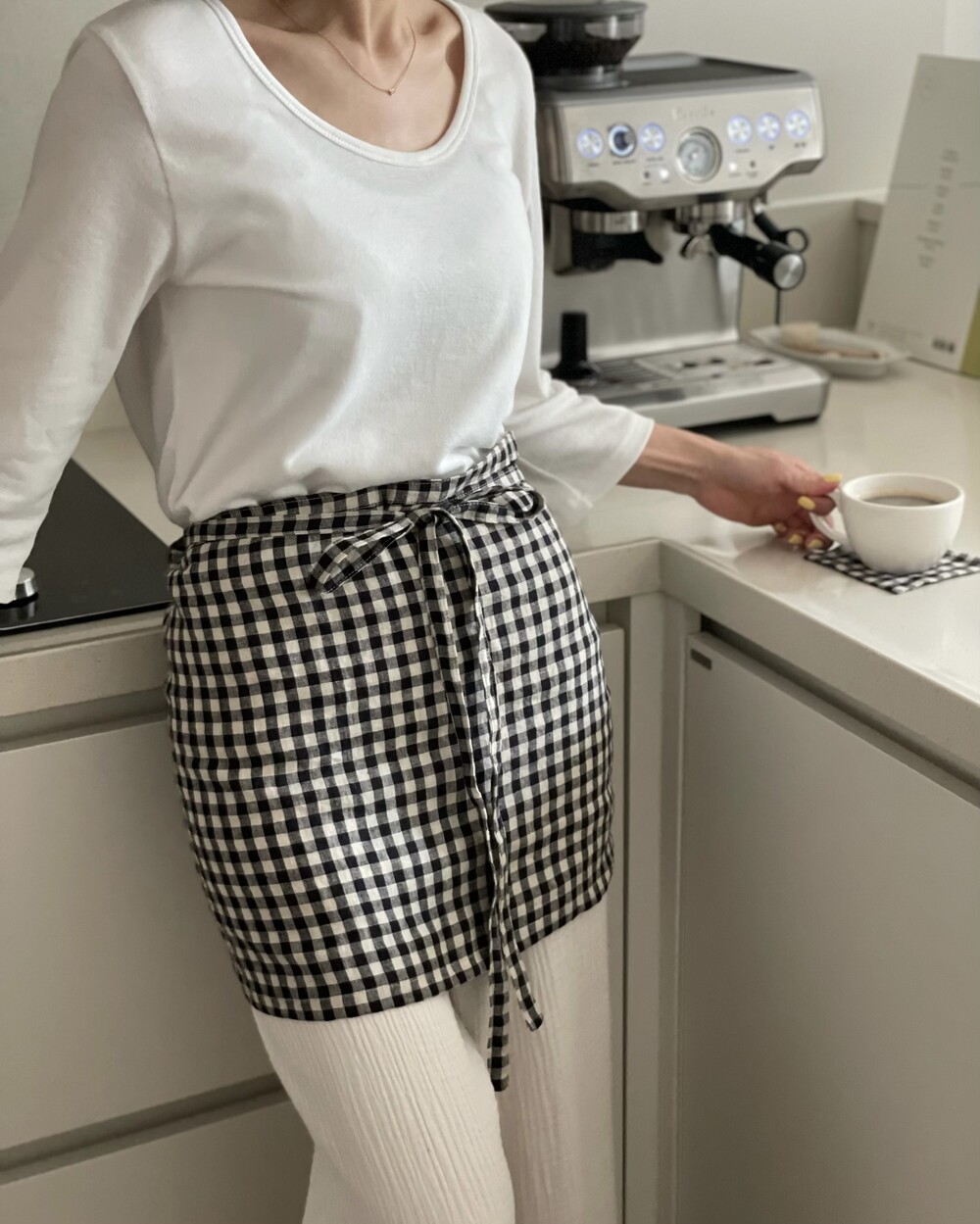 리투아니아 린넨 깅엄 체크 원단으로 제작한 스커트 에이프런