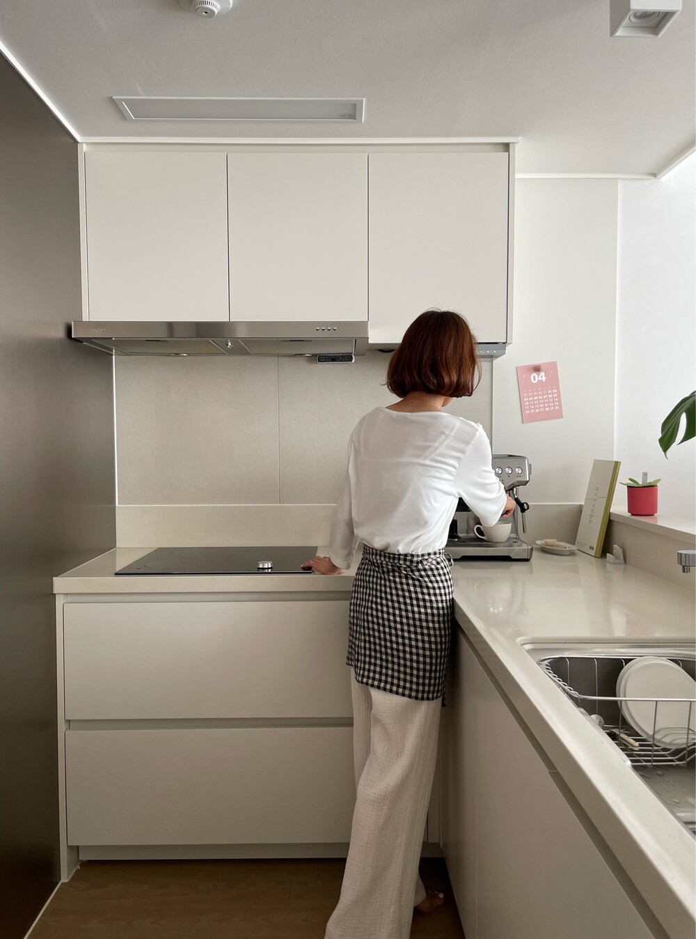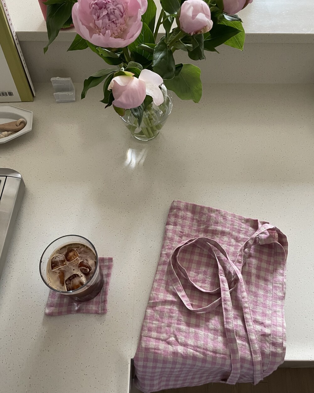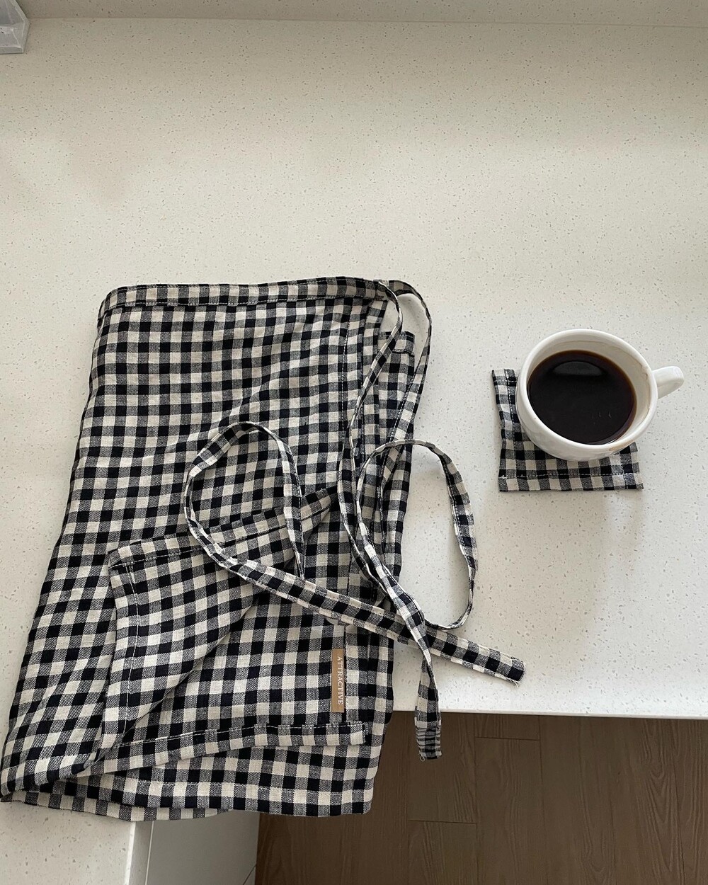 리투아니아 린넨 깅엄 체크 원단으로 제작한 스커트 에이프런