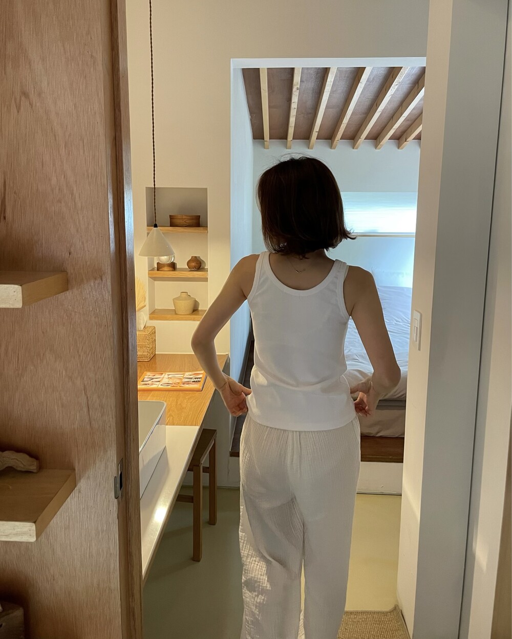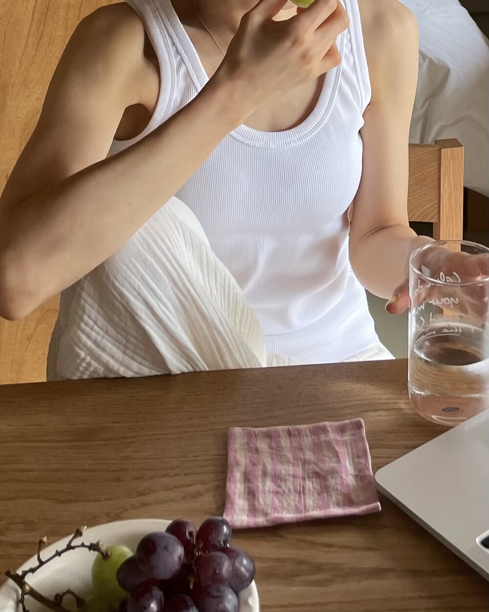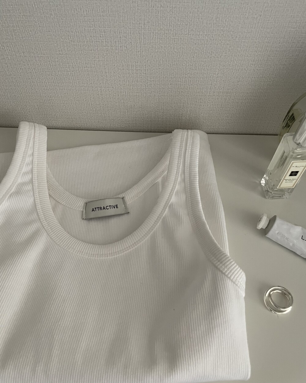 탄탄하고 신축성이 있는 립조직 원단으로 제작한 민소매 티셔츠