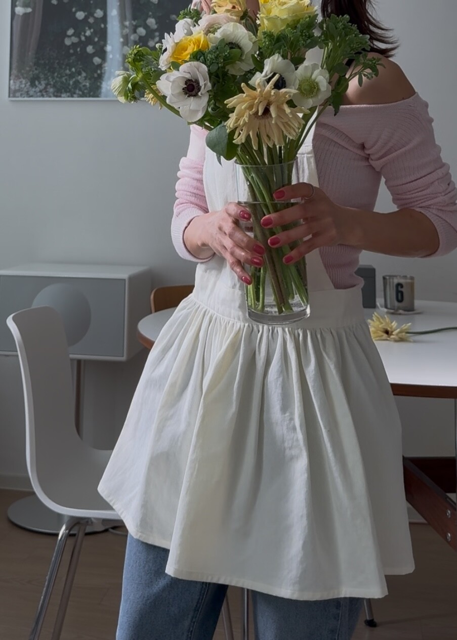 탄탄하고 부드러운 코튼 소재로 제작한 셔링 에이프런