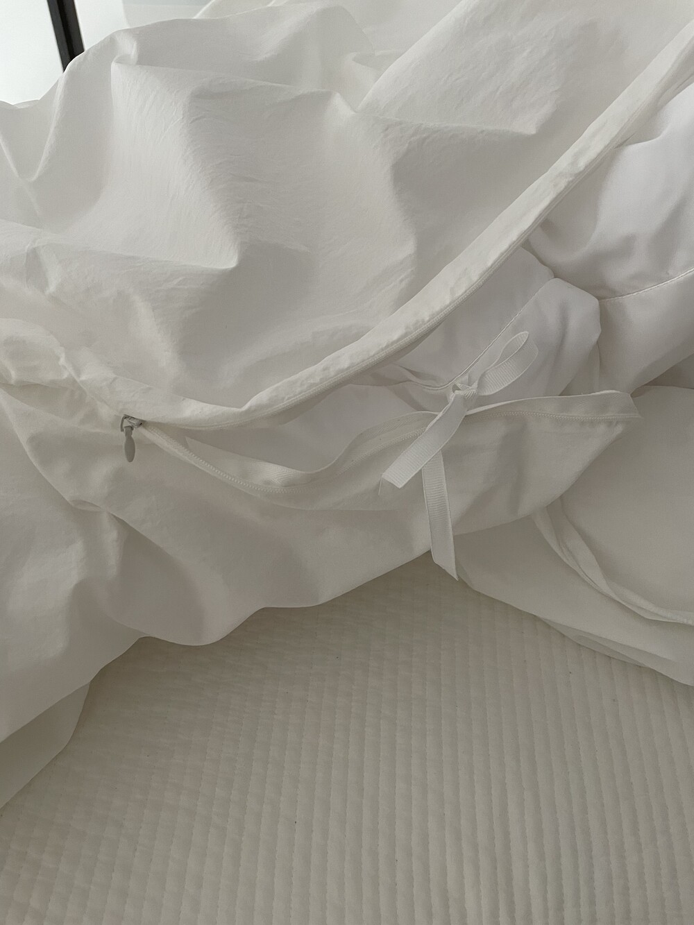 이불 커버 모서리에 끈이 있어 이불솜 고리에 묶어 주세요.