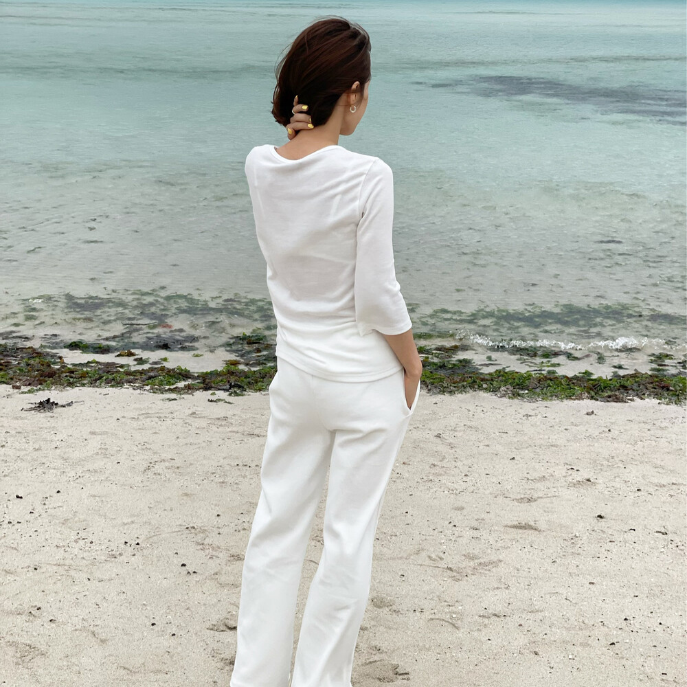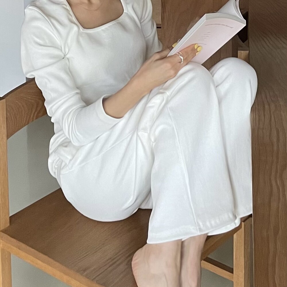팬츠는 다리가 길어보이는 일자핏으로 완성 했으며
