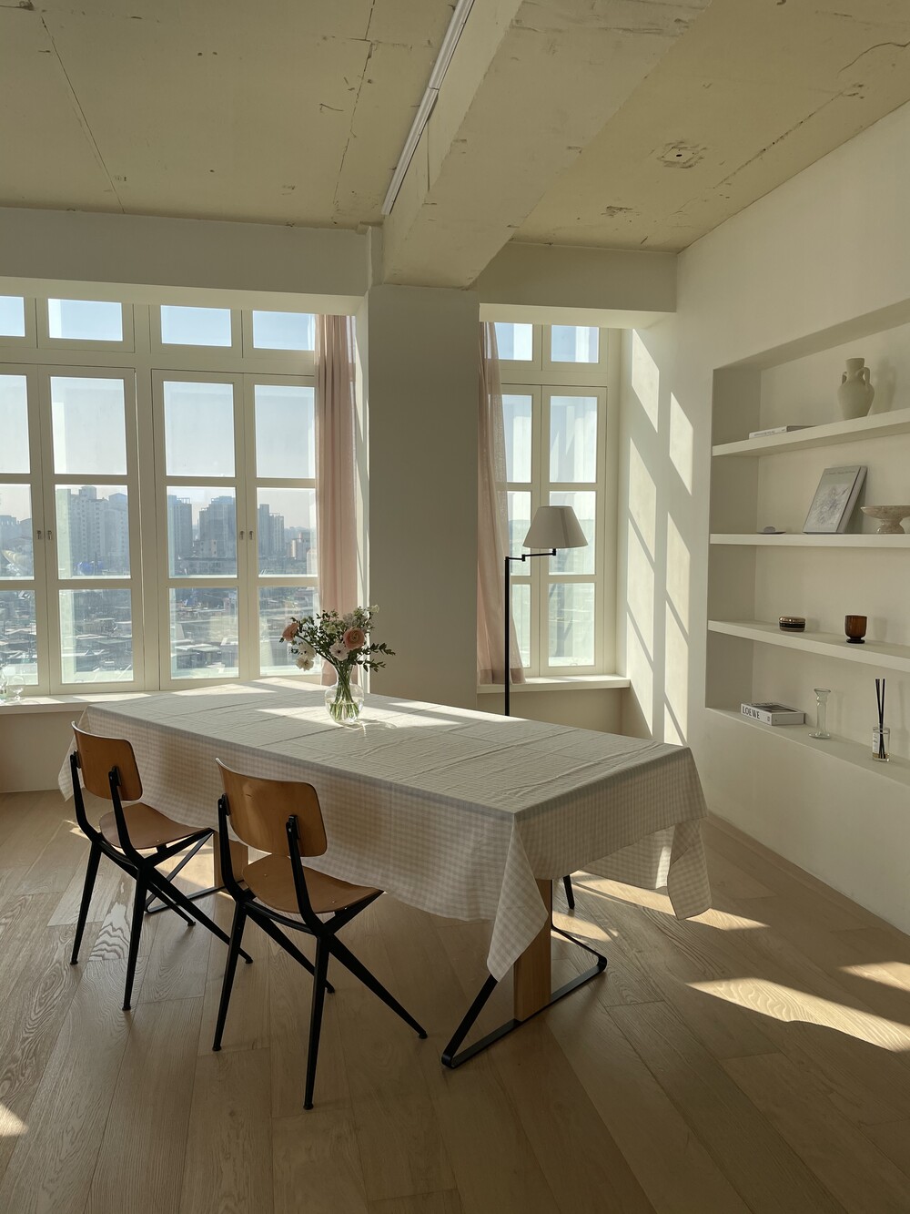 멜란지 워싱면 원단으로 제작한 테이블 보