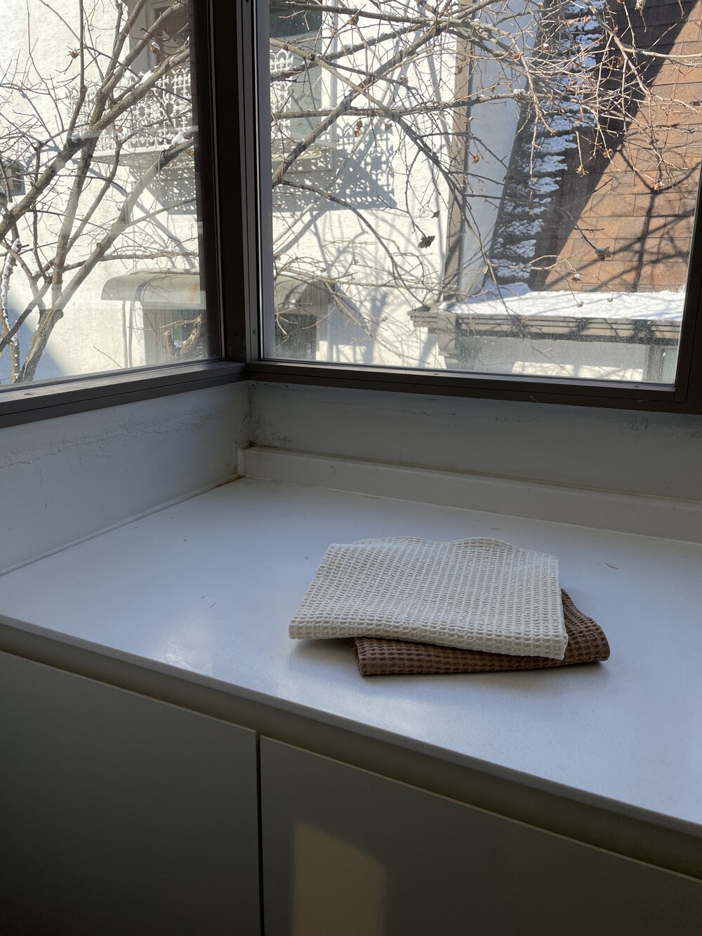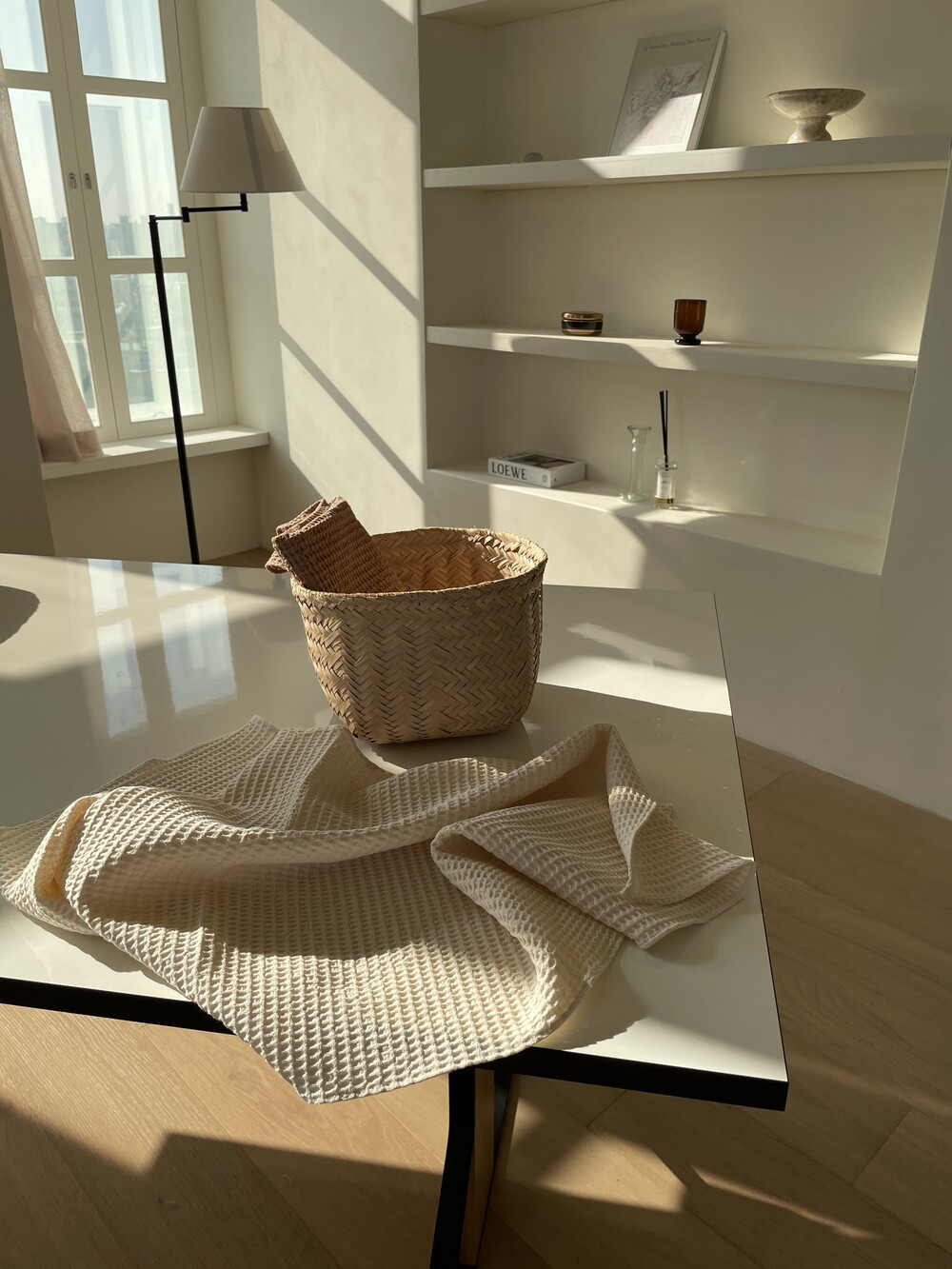 얇고 흡수력이 좋아 주방에서 핸드 타월로 사용하기 좋아요.