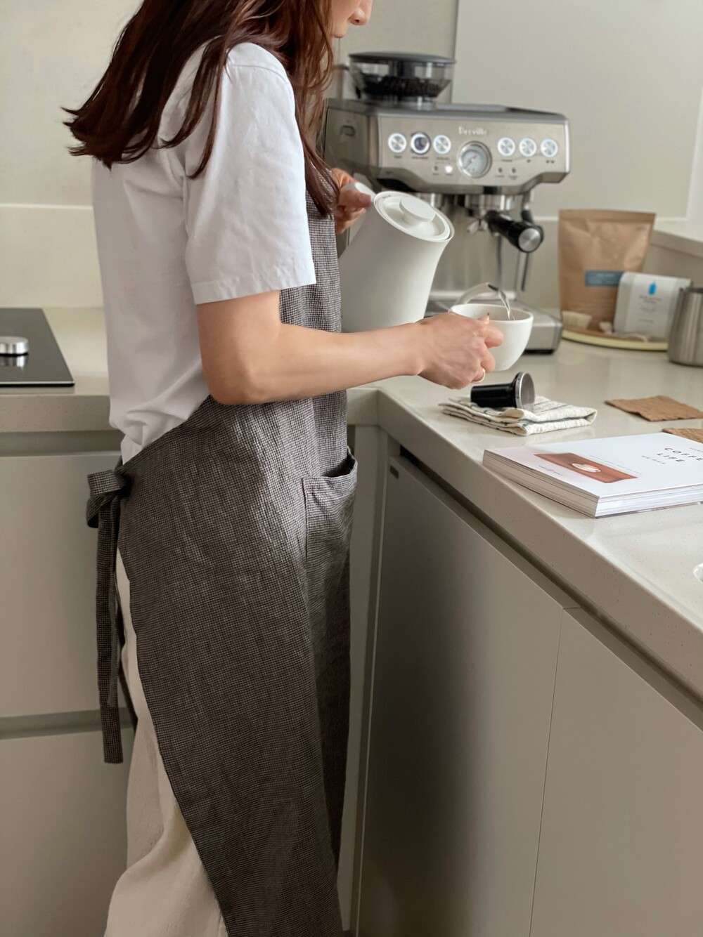 얇고 부드러운 코튼 소재로 한여름에도 시원하고 쾌적하게 착용할 수 있는 에이프런