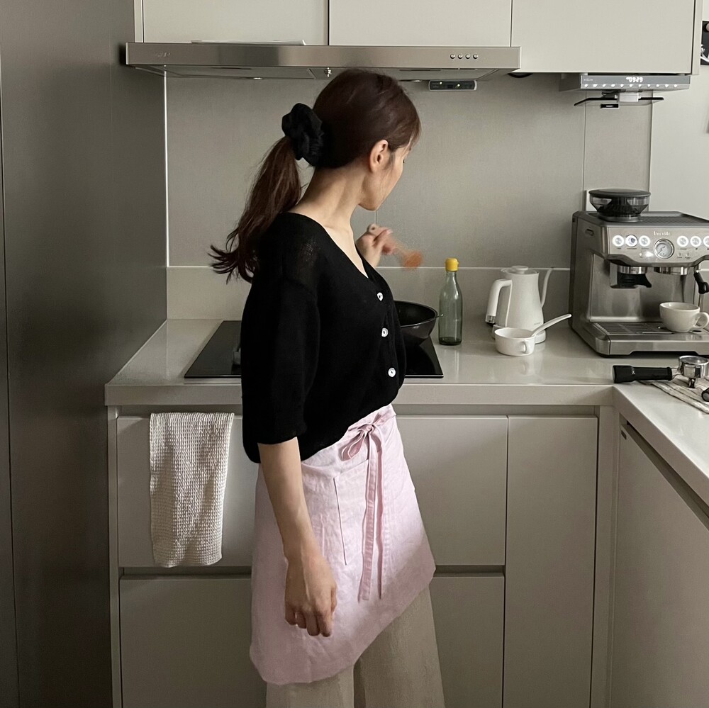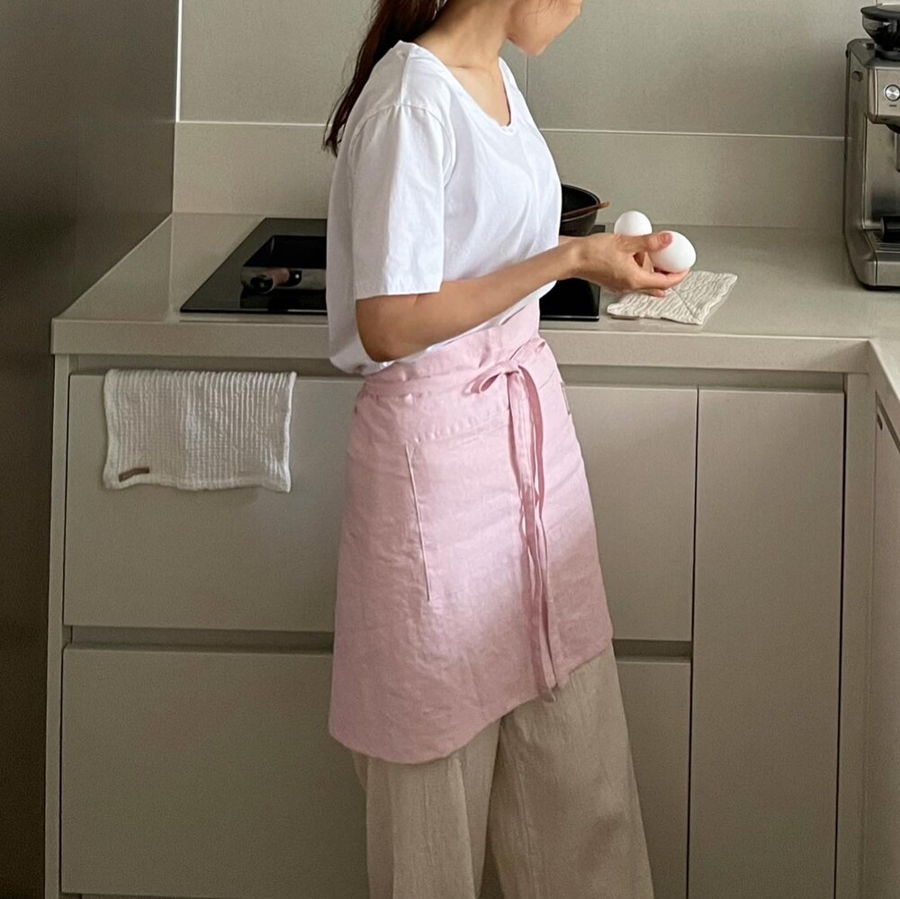 딸기 우유 컬러의 스커트 디자인으로 제작한 에이프런