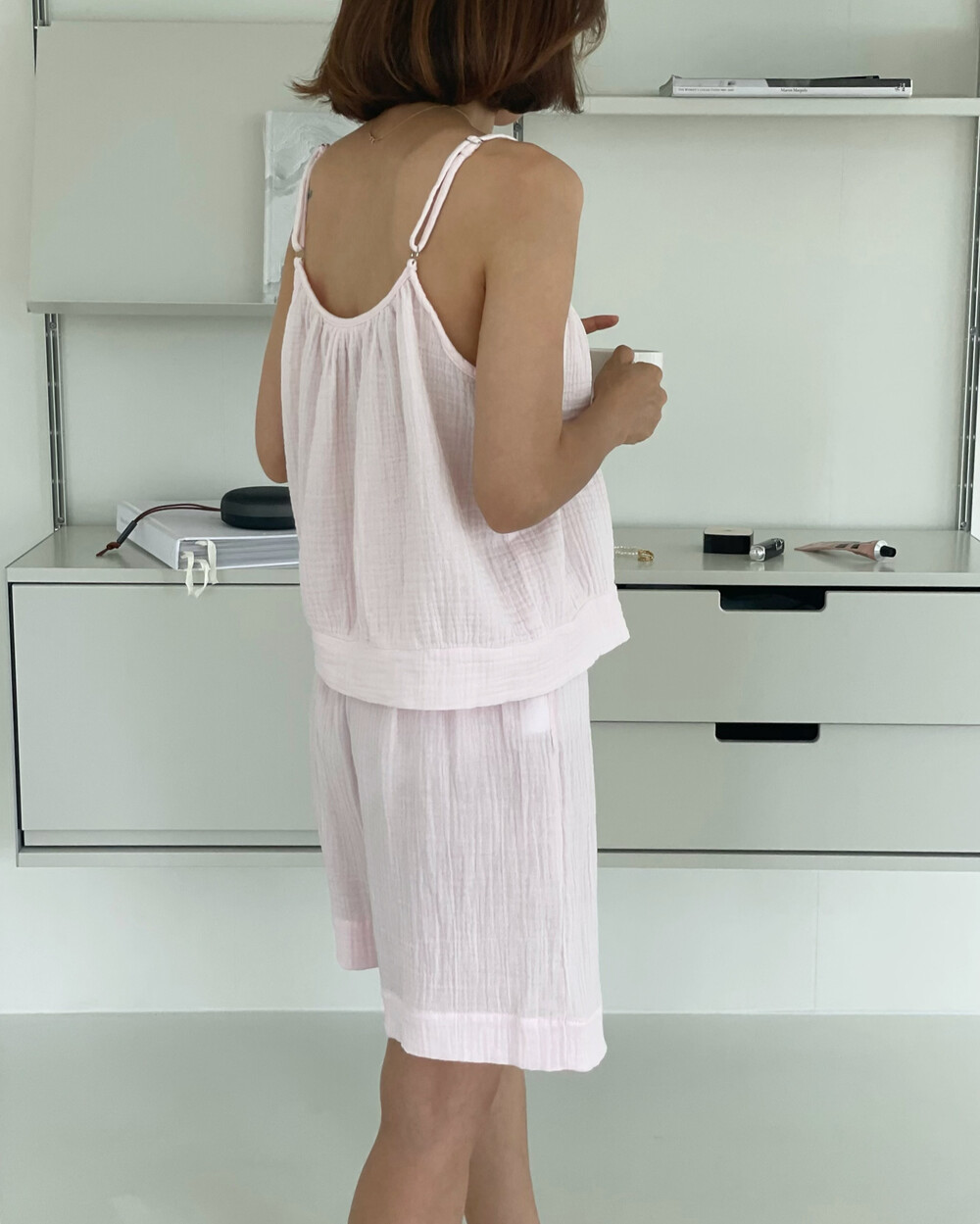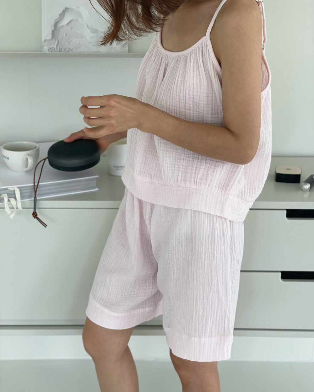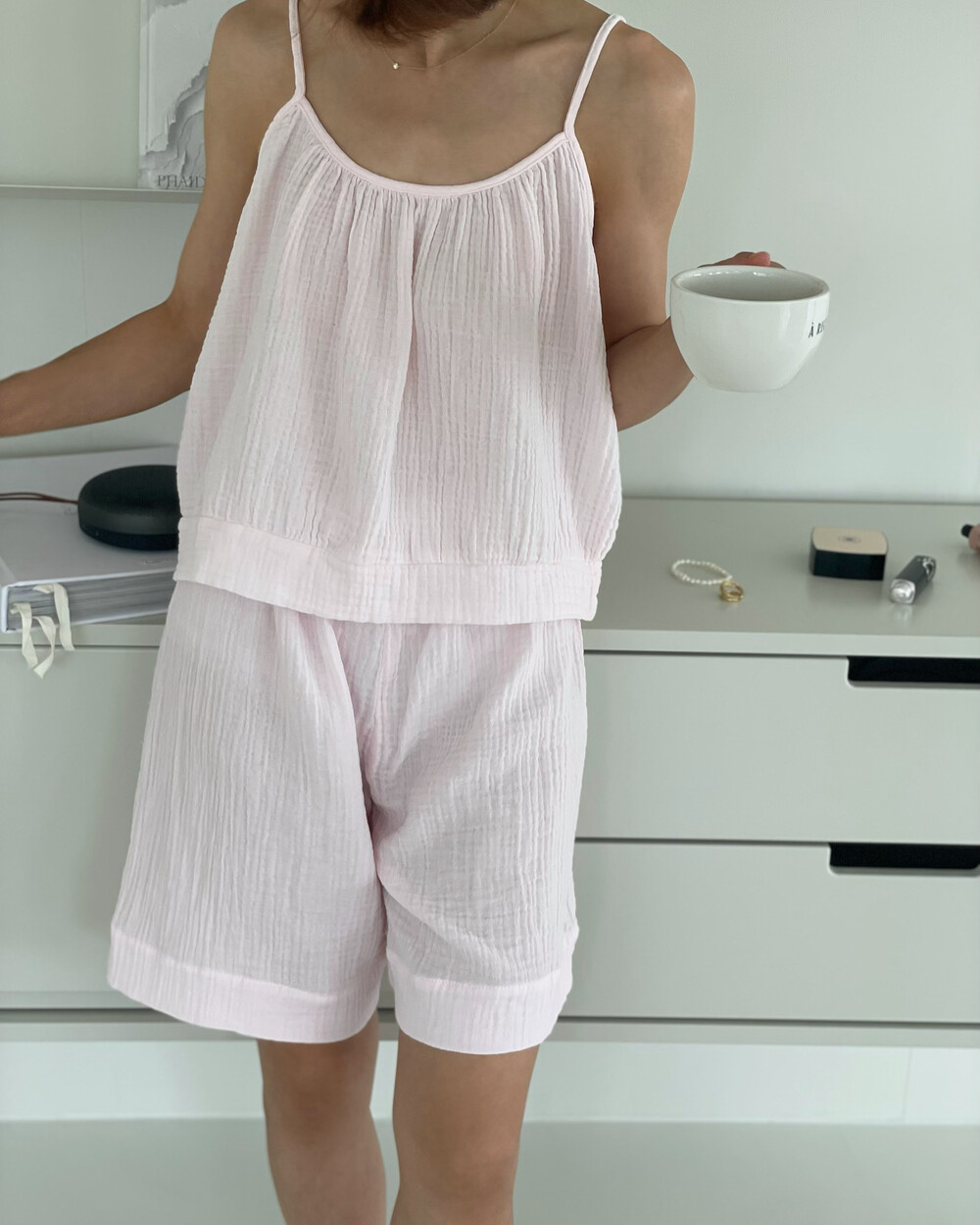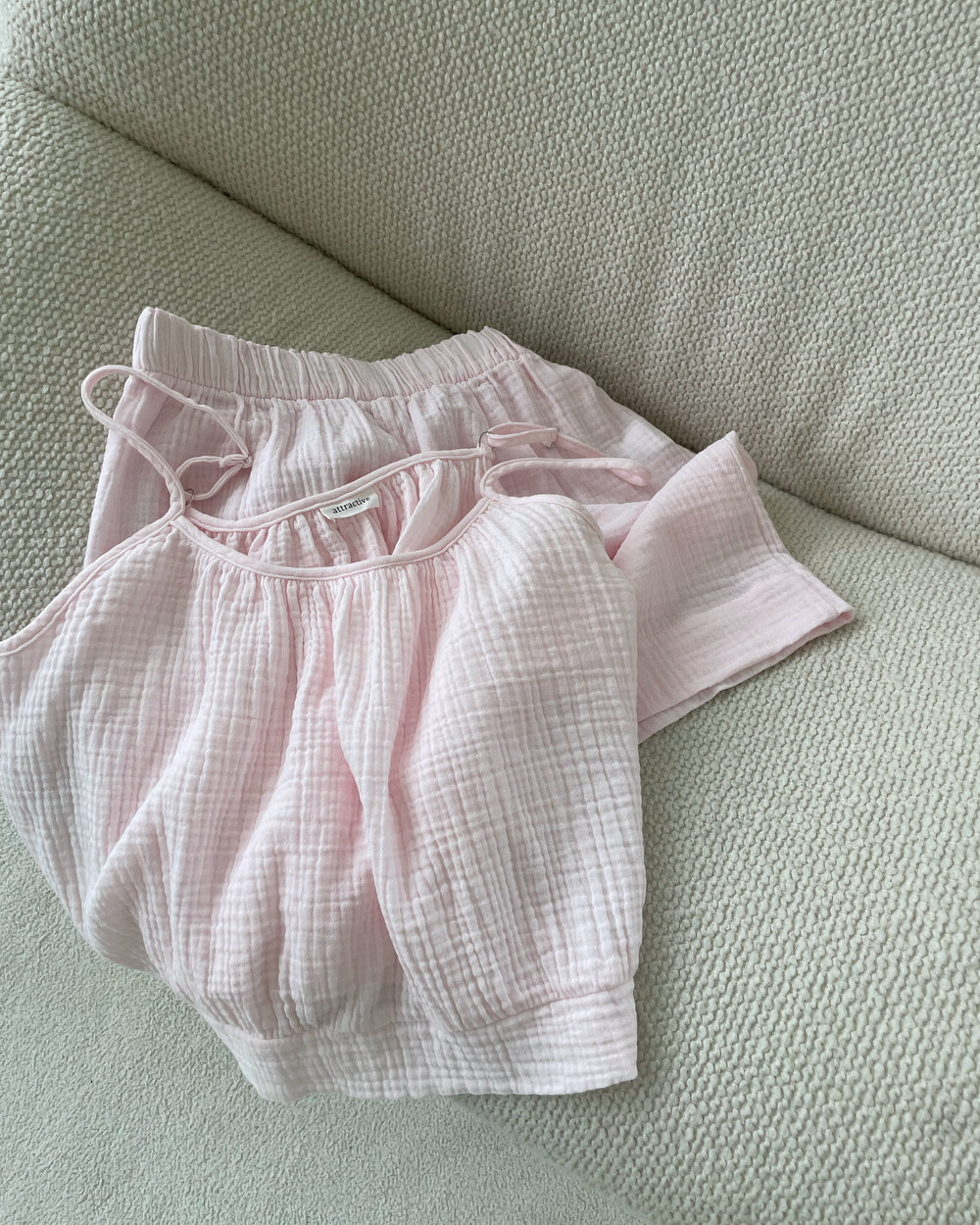 핑크 쇼츠와 파자마 세트로 추천드려요.
