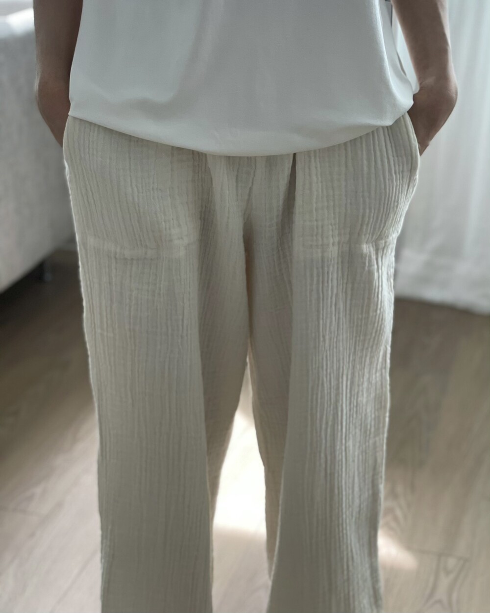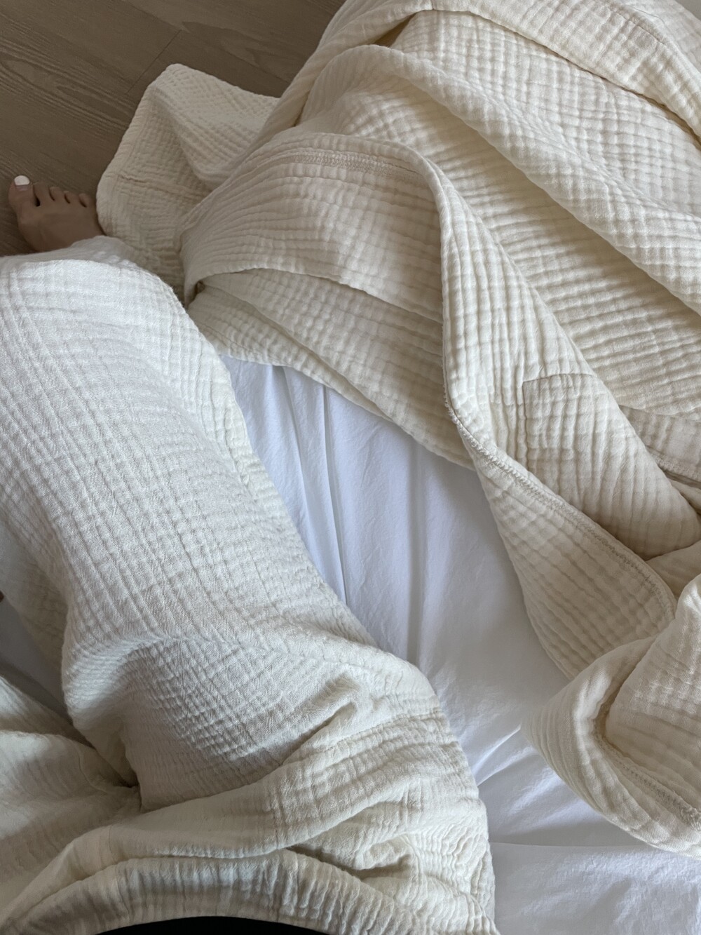 거즈 소재로 사계절 가볍고 쾌적하게 입을 수 있어요.
